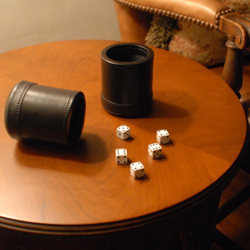 These finely made, mahogany, leather dice cups are used by the prestigious Bel Aire Country Club in Los Angeles, CA. Weighing a half pound, each gorgeous dice cup comes with five traditional white dice with black dots. Are you feeling lucky tonight? This product is perfect for you!
